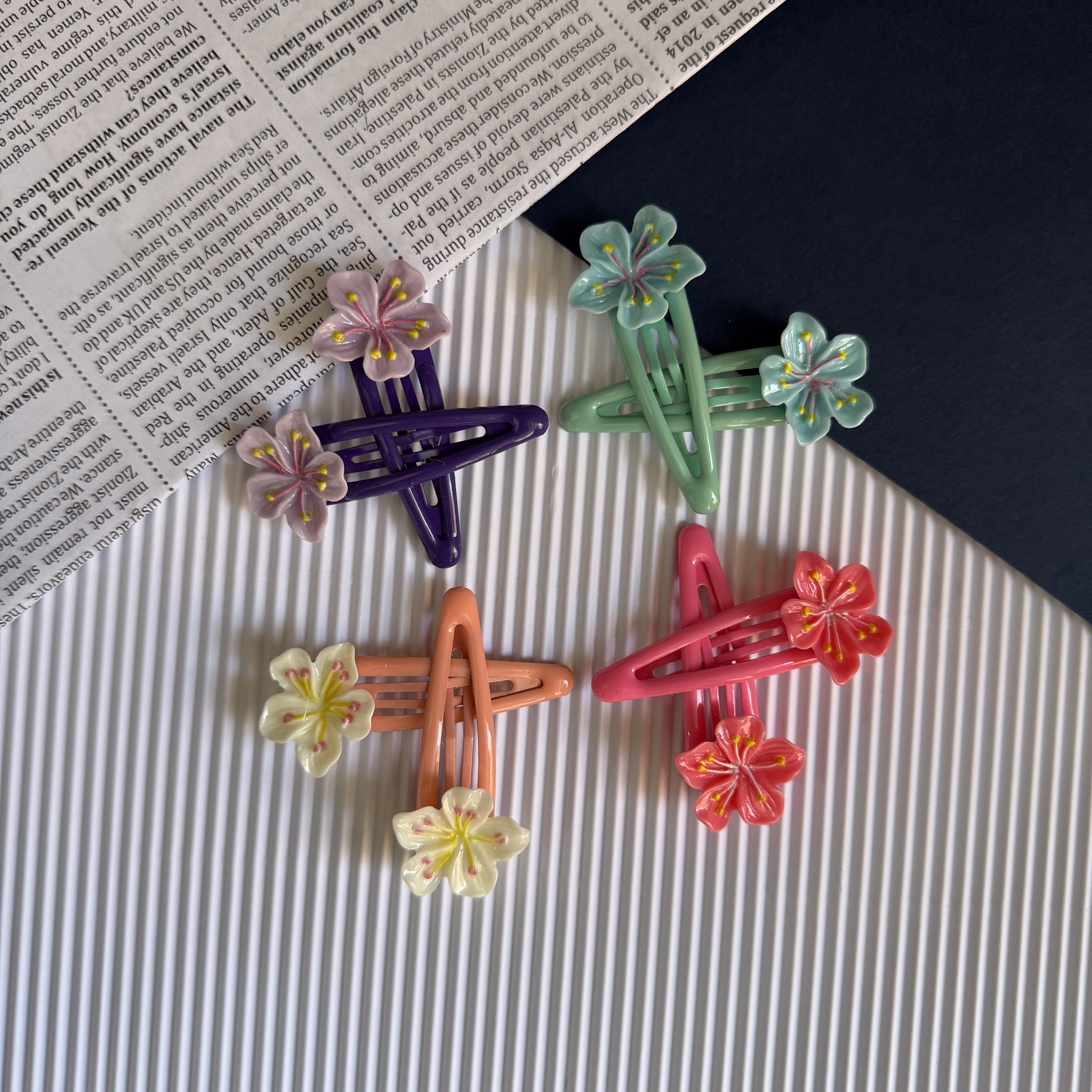 گیره فلزی مینی گلدار رنگی